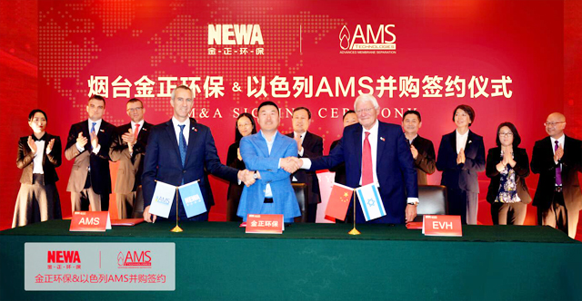 2018年11月28日,煙臺金正環(huán)保科技有限公司并購以色列AMS公司簽約儀式在煙臺東方海天酒店隆重舉行。這是金正環(huán)保于2017年在美國納斯達(dá)克主板上市后拓展全球市場布局的堅(jiān)實(shí)一步。