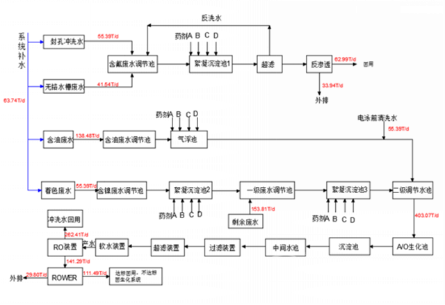污水屬性:污水屬于鋁材陽極氧化及電噴漆生產(chǎn)過程中產(chǎn)生的污水,處理目的是經(jīng)處理后大部分淡水回用,剩余的濃水符合排放標準,排入市政管網(wǎng)。
