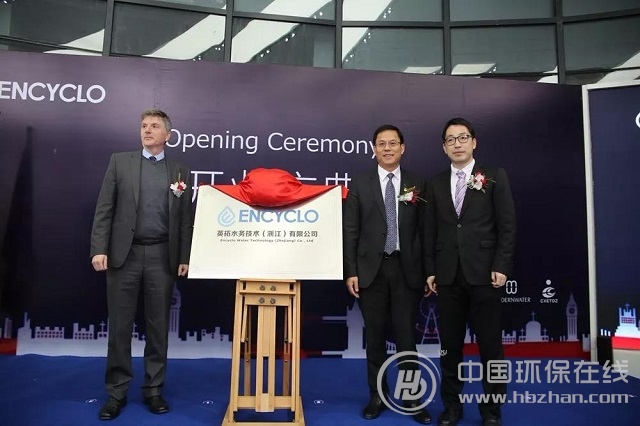 副縣長(zhǎng)臧雷鳴宣布英拓水務(wù)技術(shù)(浙江)有限公司成立,現(xiàn)代水務(wù)CEOSimonHumphrey先生與杭州上拓環(huán)境股份總經(jīng)理譚斌先生共同為英拓公司揭牌。