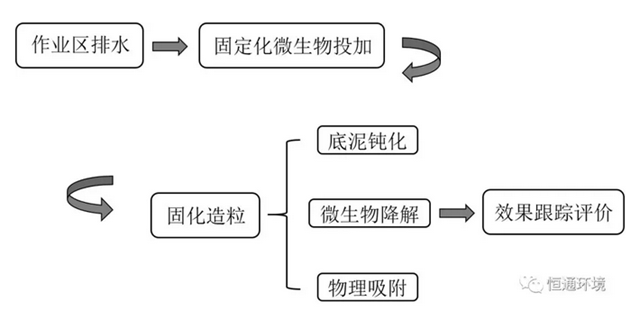 八干渠底泥原位治理,利用底泥造粒鈍化與固定化微生物組合技術(shù)抑制底泥污染物釋放和促進(jìn)污染物降解。該技術(shù)使具有高效降解污染物能力的微生物固定于載體填料上,然后與污染底泥混合并造粒包裹用來進(jìn)一步降解底泥中污染物,從而減少對上覆水體的污染。這種固定化微生物載體既可以利用本身所附著的微生物降解污染物,同時又具有物理吸附和阻隔等功能,使污染物在生物降解與物理吸附的協(xié)同作用下被去除。