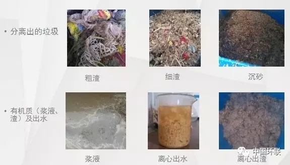 大塊垃圾及大于0.5mm沉砂的去除率在90%以上,含固率可達40%,分離出的有機糞渣含固率約25%。