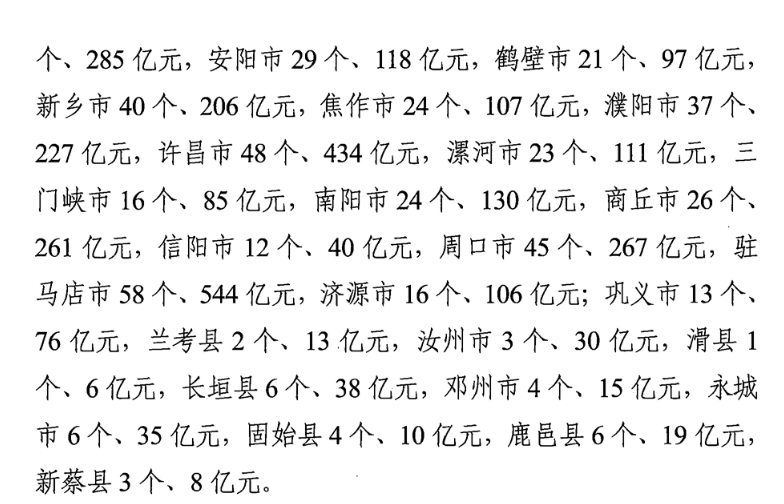 持續(xù)突出基礎設施,共選列交通、能源、水利、信息基礎設施等項目117個,總投資7033億元、年度計劃投資1421億元,較去年分別增加9%和12%,米字形高鐵、城際鐵路、鐵路專用線、高速公路“雙千工程”、十大水利工程、鄭州機場三期、“青電入豫”等項目均為選列重點。