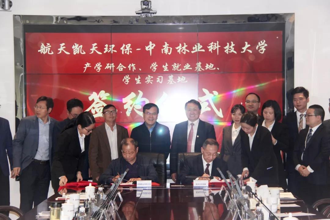 2019年11月6日,航天凱天環(huán)保科技股份有限公司與中南林業(yè)科技大學(xué)在航天凱天工業(yè)園內(nèi)成功簽訂產(chǎn)學(xué)研合作協(xié)議,學(xué)生就業(yè)、實(shí)習(xí)基地協(xié)議。中南林業(yè)科技大學(xué)黨委書記王漢青、環(huán)境科學(xué)與工程學(xué)院院長王平、科技處副處長付紅軍等,航天凱天環(huán)保總裁葉明強(qiáng)、副總裁曾毅夫、總裁助理伍蕓昕等出席簽約儀式,總裁助理葉明強(qiáng)主持會議。