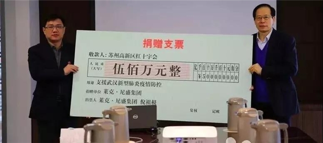 1月26日上午,位于蘇州高新區(qū)獅山橫塘街道企業(yè)萊克·尼盛集團(tuán),向蘇州高新區(qū)紅十字會(huì)捐贈(zèng)500萬元,用于支援武漢新型冠狀病毒感染引發(fā)肺炎疫情的防控工作。