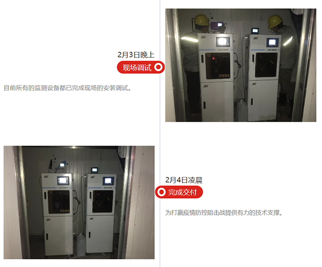此次緊急馳援前方現(xiàn)場(chǎng)設(shè)備為公司助力武漢防疫定向捐贈(zèng),包括COD、氨氮、余氯等參數(shù)水質(zhì)在線監(jiān)測(cè)設(shè)備,2月2日水質(zhì)在線監(jiān)測(cè)設(shè)備均已完成現(xiàn)場(chǎng)安裝調(diào)試,截至2月5日所有監(jiān)測(cè)設(shè)備已全部投入正常運(yùn)行。
