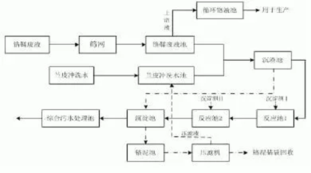 含鉻廢水:指在鉻鞣及鉻復鞣工序中產(chǎn)生的廢鉻液及相應的水洗工序廢水。