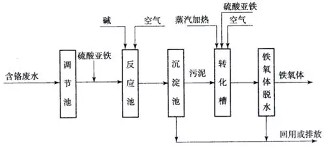 氣浮法:氣浮法用于處理鍍鉻廢水的原理是:在酸性的條件下硫酸亞鐵和六價鉻進行氧化還原反應,然后在堿性條件下產(chǎn)生絮凝體,在無數(shù)微細氣泡作用下使絮凝體浮出水面,使水質(zhì)變清。