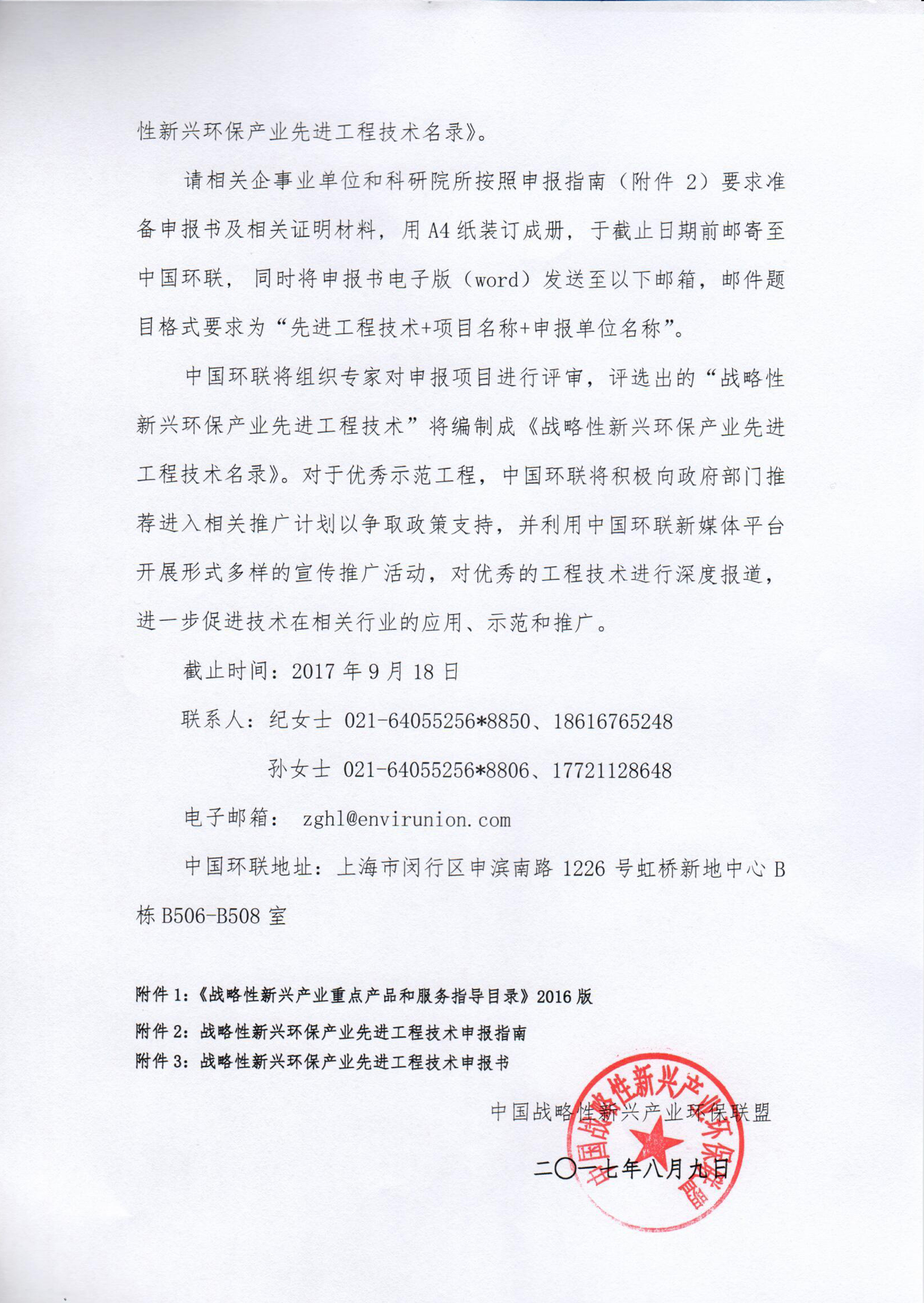 為貫徹落實(shí)《“十三五”國家戰(zhàn)略性新興產(chǎn)業(yè)發(fā)展規(guī)劃》,引導(dǎo)全社會環(huán)保產(chǎn)業(yè)資源投向,加快戰(zhàn)略性新興環(huán)保產(chǎn)業(yè)先進(jìn)工程技術(shù)的推廣應(yīng)用,中國戰(zhàn)略性新興產(chǎn)業(yè)環(huán)保聯(lián)盟(簡稱“中國環(huán)聯(lián)”)圍繞《戰(zhàn)略性新興產(chǎn)業(yè)重點(diǎn)產(chǎn)品和服務(wù)指導(dǎo)目錄》,面向企事業(yè)單位和科研院所征集“戰(zhàn)略性新興環(huán)保產(chǎn)業(yè)先進(jìn)工程技術(shù)”,編制《戰(zhàn)略性新興環(huán)保產(chǎn)業(yè)先進(jìn)工程技術(shù)名錄》。