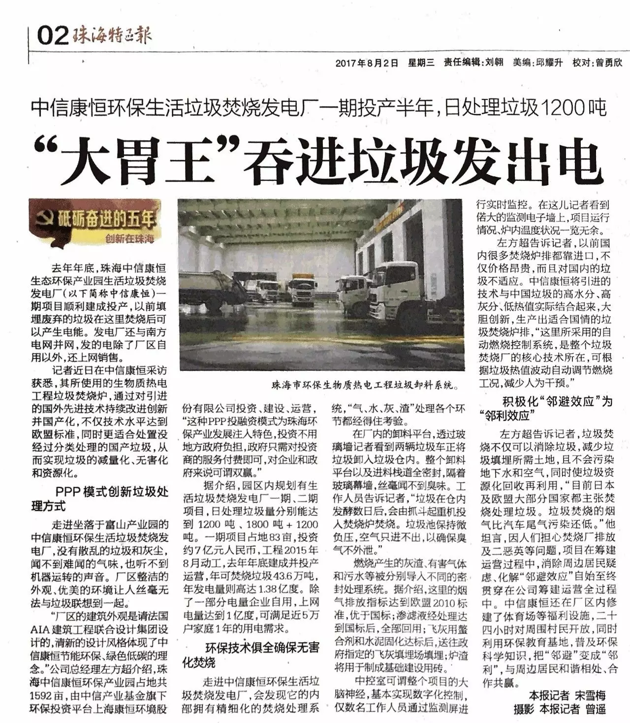 近日,《珠海特區(qū)報(bào)》專題報(bào)道康恒環(huán)境珠海垃圾焚燒發(fā)電項(xiàng)目。