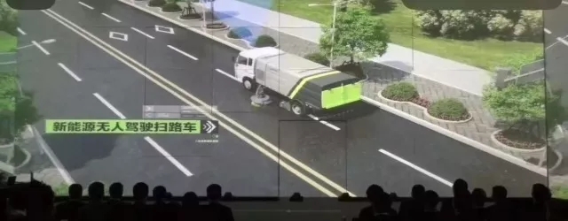 ▲無人駕駛掃路機(jī)在作業(yè)演示
