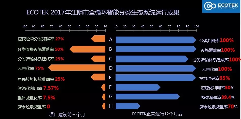 ECOTEK 運行江陰市垃圾分類前后對比