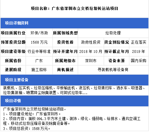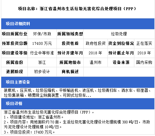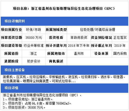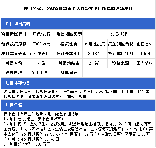 中項(xiàng)網(wǎng)獨(dú)家授權(quán)北極星固廢網(wǎng)發(fā)布最新垃圾處理項(xiàng)目(2018年10月22日更新),其中包括垃圾中轉(zhuǎn)站建設(shè)項(xiàng)目、垃圾發(fā)電廠配套填埋場(chǎng)項(xiàng)目、生活垃圾綜合處理項(xiàng)目等。具體內(nèi)容如下:
