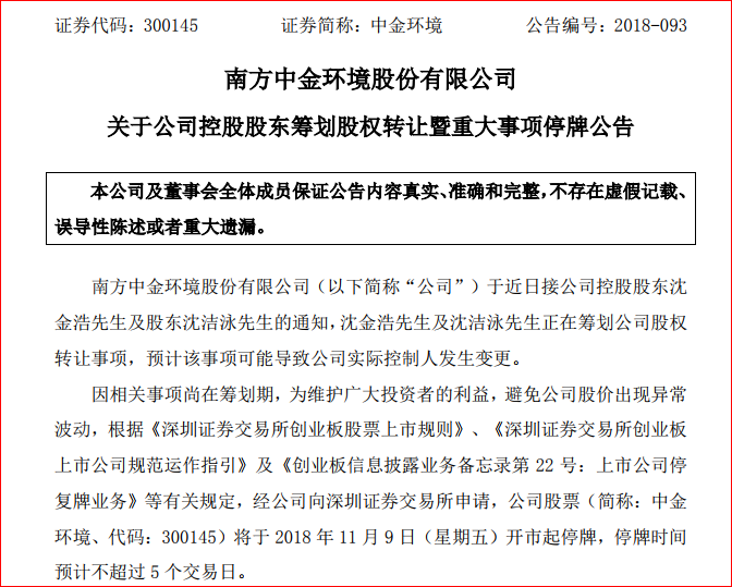 另外,公司股票11月9日起停牌。