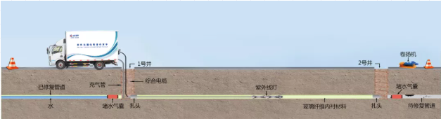 紫外線(xiàn)光原位固化內(nèi)襯非開(kāi)挖修復(fù)技術(shù)是將玻璃纖維編制成軟管浸漬光固化樹(shù)脂,然后將其拉入原有管道內(nèi)充氣擴(kuò)張緊貼原有管道,以原有管道為外模,軟管內(nèi)膜為內(nèi)模,然后紫外光的作用下使樹(shù)脂固化形成具有一定強(qiáng)度的復(fù)合內(nèi)襯管的原位固化法。待管道清理完畢,且管道破裂塌陷預(yù)處理完后,采用紫外光固化內(nèi)襯修復(fù)技術(shù)進(jìn)行修復(fù)。 ...