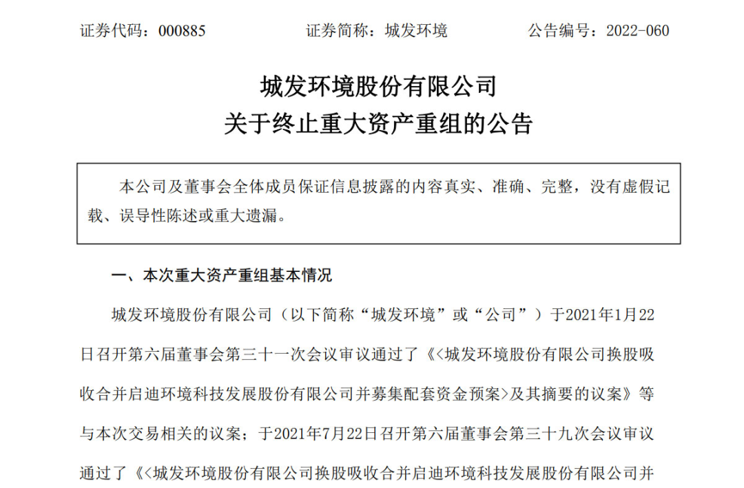 據(jù)公告顯示,終止本次重大資產(chǎn)重組的原因是城發(fā)環(huán)境自籌劃本次重大資產(chǎn)重組事項(xiàng)以來,嚴(yán)格按照相關(guān)法律法規(guī)的要求,與交易對方及其他相關(guān)雙方持續(xù)進(jìn)行磋商與研討,并根據(jù)磋商結(jié)果積極推進(jìn)相關(guān)盡職調(diào)查、審計、信息披露、內(nèi)部決策等工作。鑒于本次重大重組方案論證歷時較長,相關(guān)市場環(huán)境較本次交易籌劃之初發(fā)生較大變化。經(jīng)...