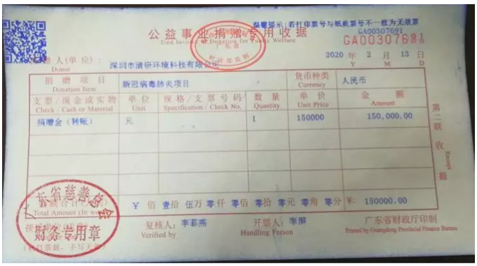 為表達對前線抗疫戰(zhàn)士的敬意和支持,2020年2月13日,深圳市清研環(huán)境科技有限公司向廣東省慈善基金會捐助現(xiàn)金15萬元。同時,清研環(huán)境骨干員工組成的“戰(zhàn)狼團隊”也自發(fā)捐助3.25萬元用于為抗疫戰(zhàn)士購買愛心物資,其中第一批愛心物資已于當(dāng)天交給支援武漢的廣東醫(yī)療隊醫(yī)護人員。廣東省慈...