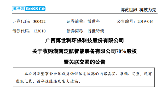 日前,廣西博世科環(huán)??萍脊煞萦邢薰?簡稱“博世科”)發(fā)布公告,公司擬收購西藏廣博環(huán)保投資有限責任公司持有的湖南泛航智能裝備有限公司(簡稱“泛航裝備”)70%股權(quán)。本次收購完成后,泛航裝備將成為公司的控股子公司。 公告顯示,標的公司泛航裝備成立于201...